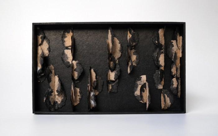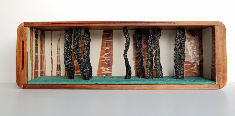 FORÊT NOIRE — 2024, 15 x 24,5 x 2 cm, papier mâché, encre de chine, carton