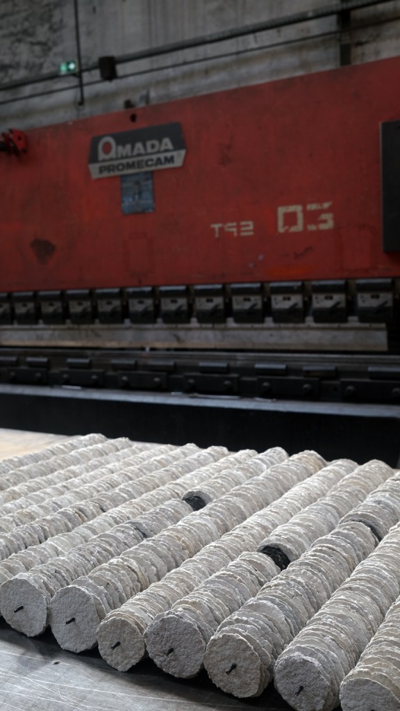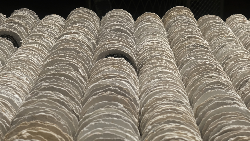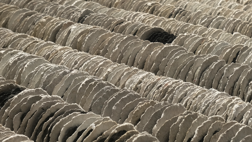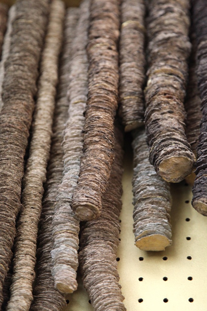 LES FÛTS — 2023, 70 x 7 cm, papier mâché, corde à piano