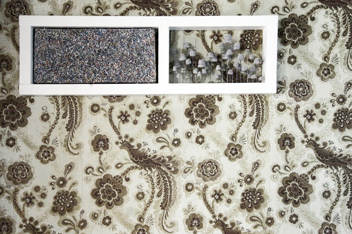 PAN DE SAULE — 2012, 80 x 60 x 11 cm, papier, caisse en bois, acrylique, sciure, verre