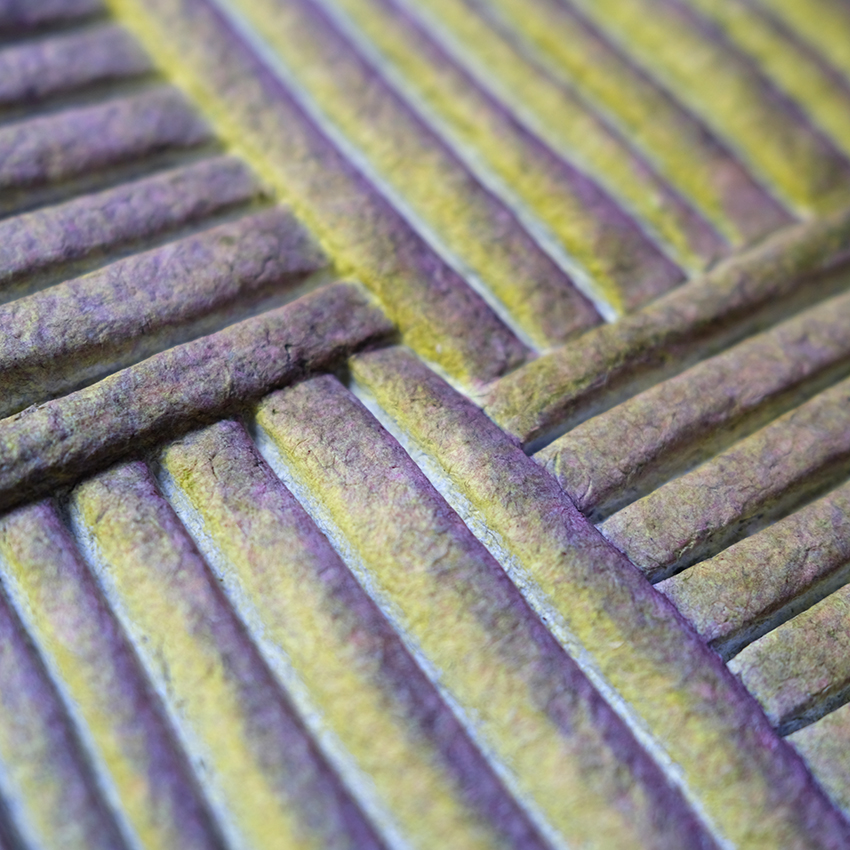 GRAND TISSÉ (Begonia) — 2025, 57 x 40 cm, papier mâché, encre