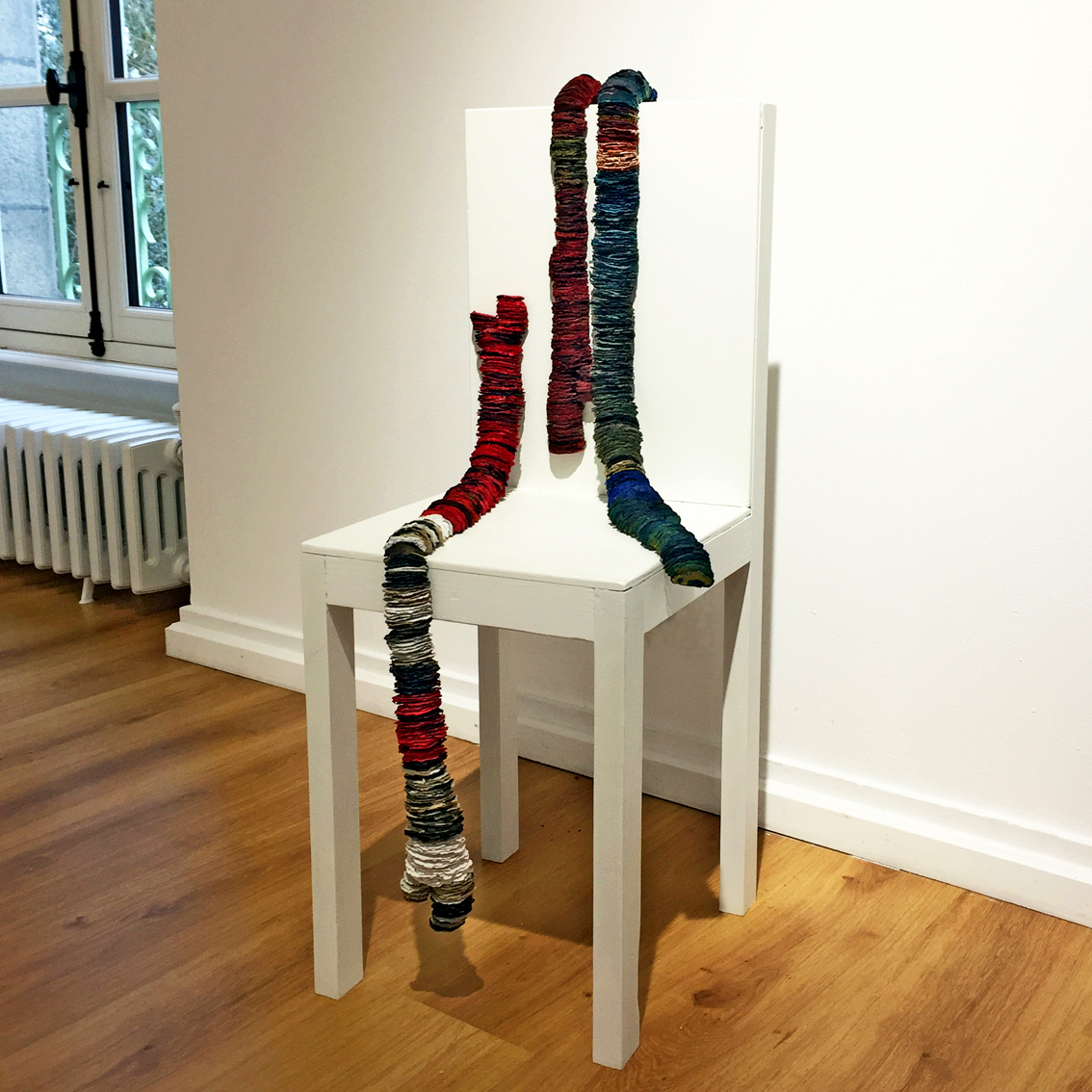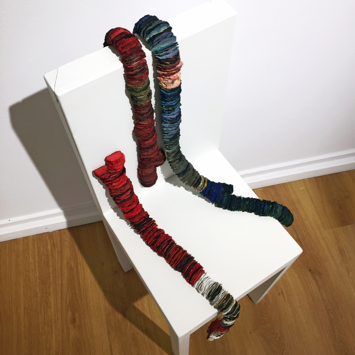 TRAVERSES — 2022, env. 90 x 7 cm, papier mâché, encre
